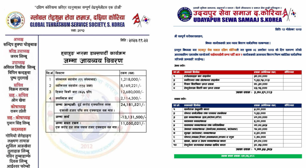 ग्लोबल तेह्रथुम सेवा समाज र उदयपुर सेवा समाजले छुसक डान्स पार्टीको आयव्यय सार्वजनिक गरेको छ। दुइ संस्थाले आइतवार निक नेपाल ट्राभल्सको हलमा संयुक्त रुपमा आयव्यय सार्वजनिक गरेको थियो। तेह्रथुमले डान्स पार्टीमा २ करोड ४१ लाख आम्दानी गर्दै १ करोड ३१ लाख खर्च गरि १ करोड १० लाख वन बचत गर्न सफल भएको छ भने ...