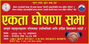 तमू धीं दक्षिण कोरियाको ऐतिहासिक आसन्न नवौं केन्द्रीय अधिवेशनलाई सभ्य र भव्य रुपमा सम्पन्न गर्न सम्पूर्ण संस्था सम्बद्ध शुभचिन्तक र कोरियावासी तमू दाजुभाई तथा दिदिबहिनीहरुलाई गरिमामय सहभागिताका लागि तमू धीं दक्षिण कोरियाले अनुरोध गर्दै हार्दिक निमन्त्रणा गरेको छ ।