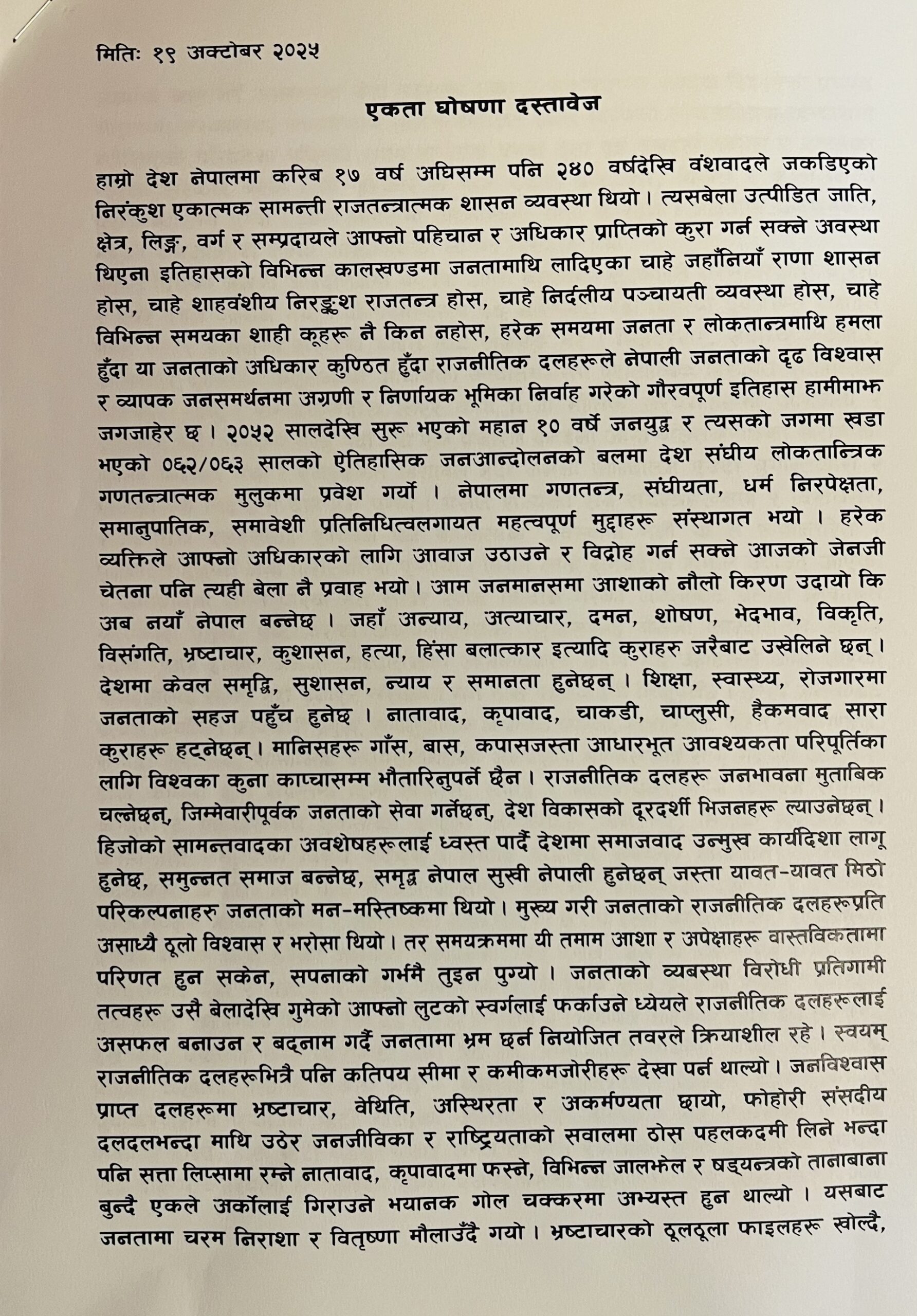 एकता घोषणा सभामा नेपाली जनसम्पर्क समितिका सभापति भजिन्द्र क्षेत्री, प्रवासी नेपाली मञ्चका अध्यक्ष अञ्जन कुलुङ राई, नेपाली समाज प्रवासका अध्यक्ष पिएन शेर्पा, NRNA अध्यक्ष विपिन गुरुङ, NRNA अध्यक्ष पार्वती मोक्तान, NCC अध्यक्ष हरी खनाल लगायत प्रदेश स्तरिय संस्थाका अध्यक्ष एवम प्रतिनिधि हरुले शुभकामना मन्तव्य व्यक्त गरेका थिए।