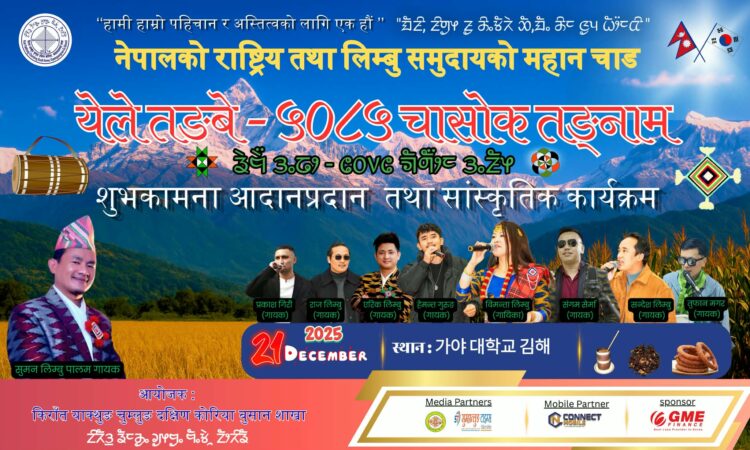 किरात याक्थुङ चुम्लुङ बुसान शाखाले लिम्बु समुदायको चाड “चासोक तङनाम” शुभकामना आदानप्रदान एवम साँस्कृतिक कार्यक्रम गरि मनाउने भएको छ। यहिँ डिसेम्बर २१ तारिख आइतबार 가야 대학교 किम्हेमा चासोकको लागि सम्पूर्ण तयारी भइसकेको अध्यक्ष प्रताप इधिङ्गोले जानकारी गराएका छन्।