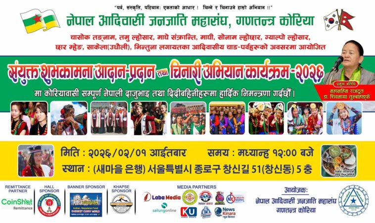 आदिवासी चाडपर्वहरूको उपलक्ष्यमा नेपाल आदिवासी जनजाति महासङ्घ, गणतन्त्र कोरियाको आयोजनामा हुन लागिएको “संयुक्त शुभकामना आदान–प्रदान तथा चिनारी अभियान कार्यक्रम–२०२६” को तयारी अन्तिम चरणमा पुगेको छ।